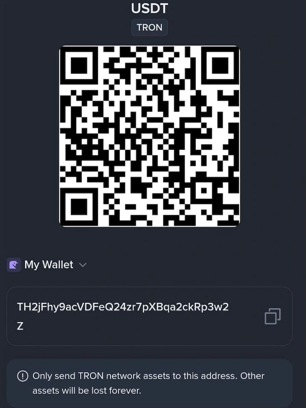 Only send USDT on TRC20 network.